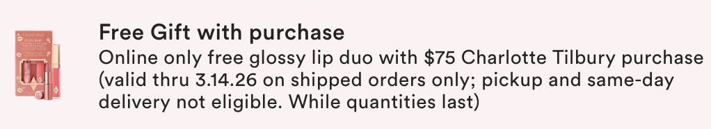 3/8 – Choose 1 of 3 Free Woman’s Day Gift with $60 purchase