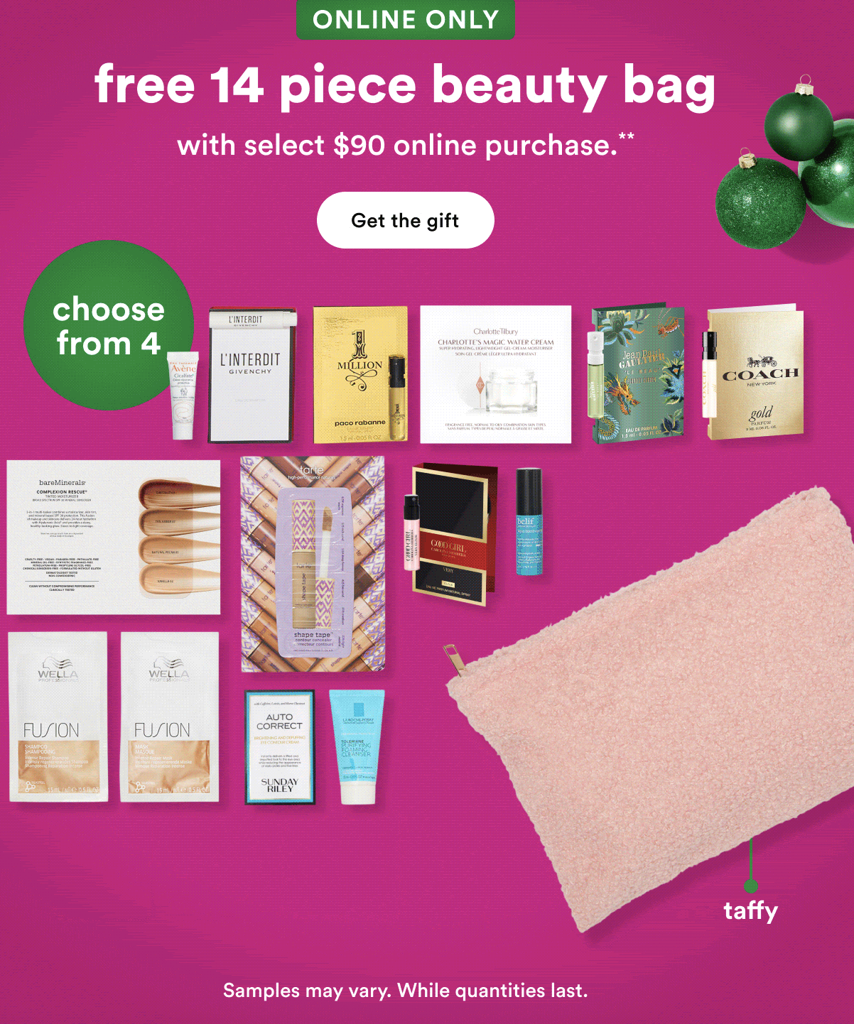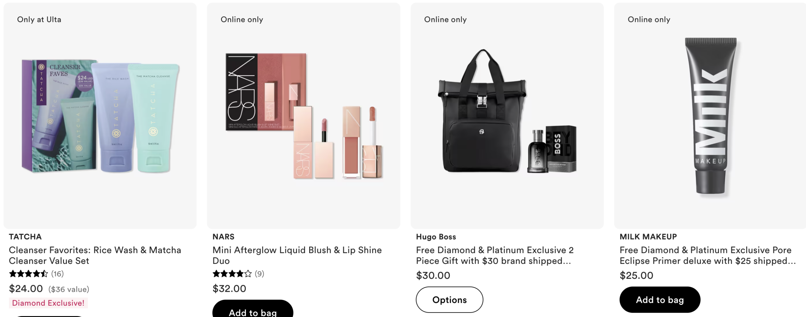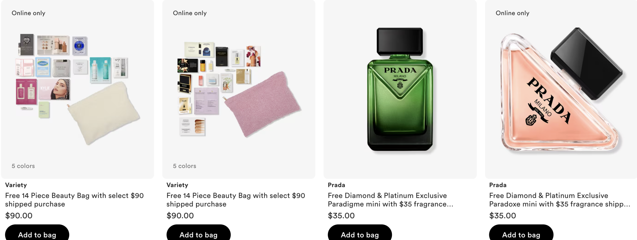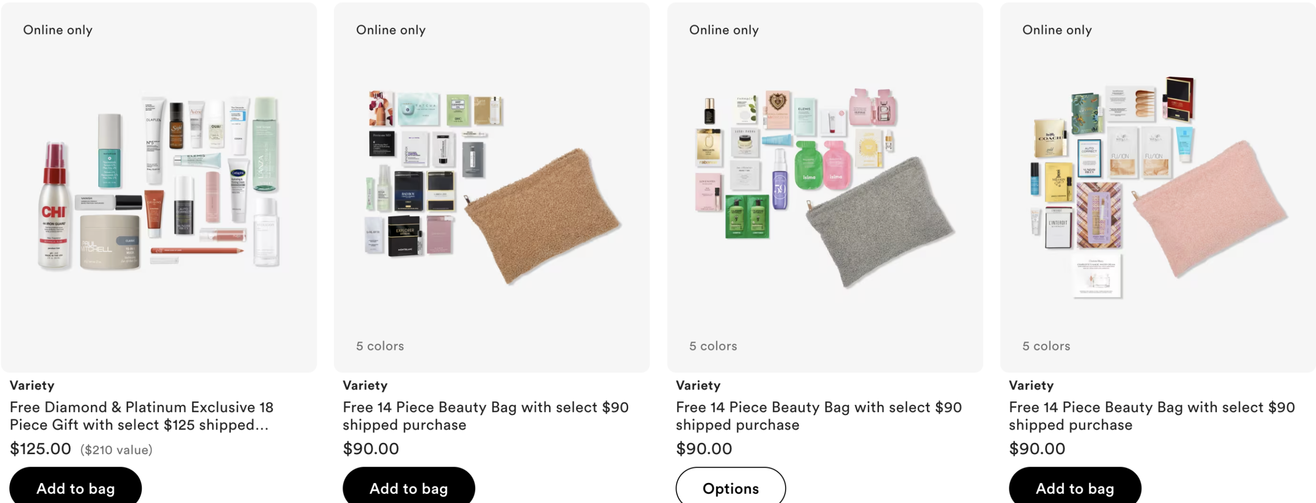 This one is back – Choose 1 of 3 Free 12 Piece Beauty Bag with select $90 shipped purchase only at Ulta.com. MUST ADD TO BAG. One per customer. While quantities last. Must have one non UB Marketplace™ Product in bag to qualify.