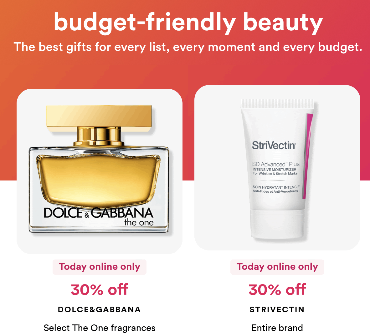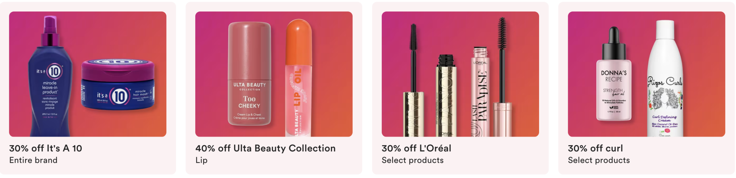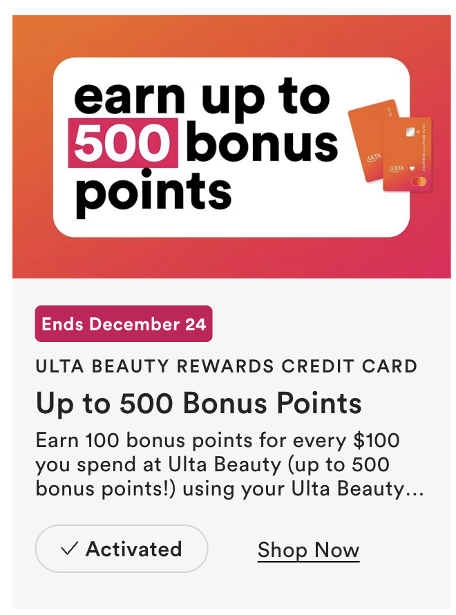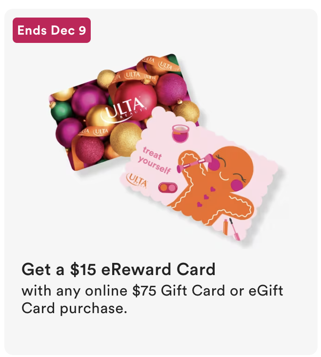 Receive $10 off a qualifying $40 purchase or $20 off a qualifying $100 purchase at Ulta.com, use code CHEER. Coupon valid from 12.10.25 thru 12.14.25. Including prestige brands and fragrances. Click here for the in store coupon.