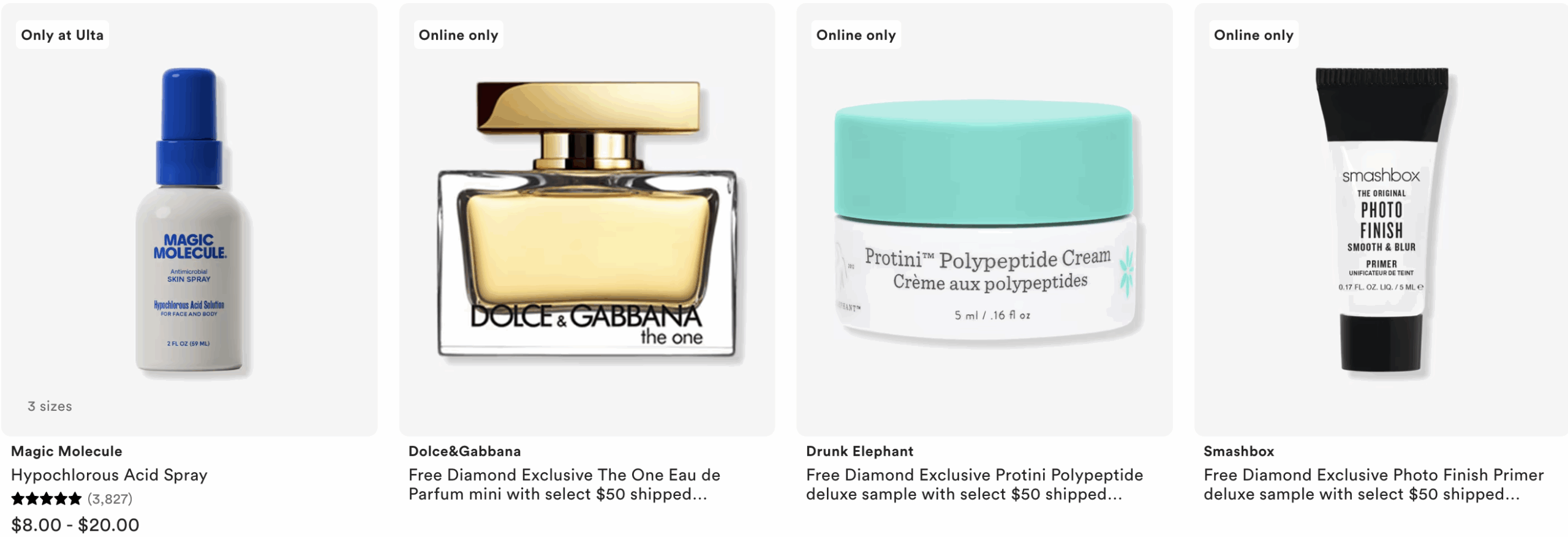 Free Body Care Gift with $50 shipped purchase only at Ulta.com. MUST ADD TO BAG. One per customer. While quantities last. Must have one non UB Marketplace Product in bag to qualify.