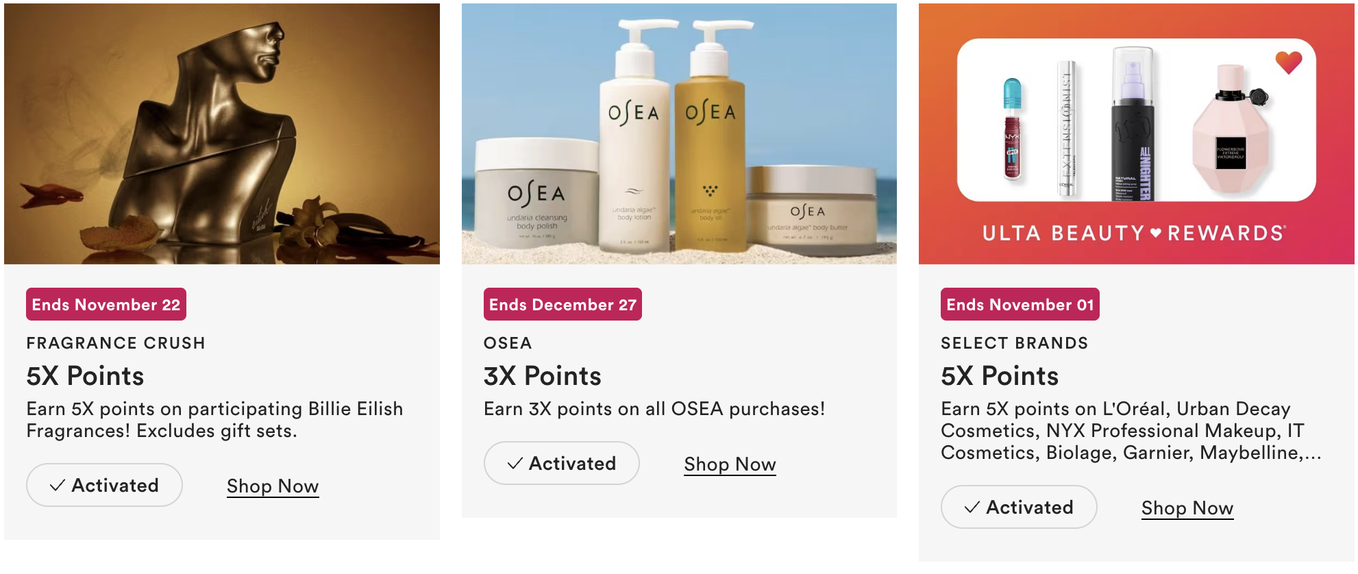 - Earn 3X points on all OSEA purchases! Ends Sat, Dec 27 at 11:59 CST