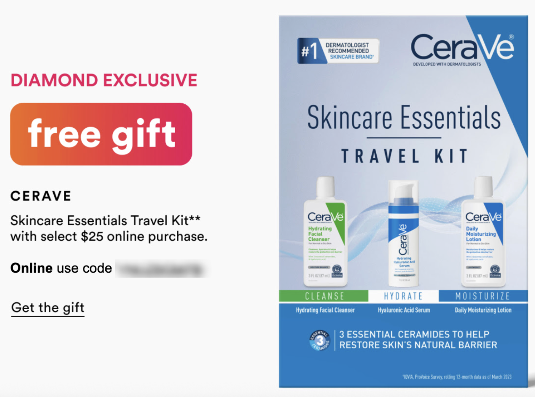 Ulta just added a new Diamond perk – Free CeraVe Skincare Essentials Travel Size Kit with any $25 purchase.