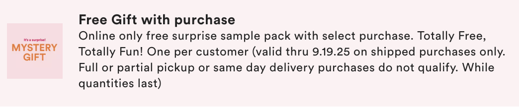 Choose 1 of 2 Free Mystery Gift with $50 Daily Beauty Steal shipped purchase only at Ulta.com. MUST ADD TO BAG. One per customer. While quantities last.