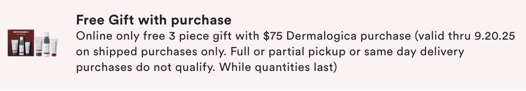 Free shipping with $49 purchase. Click here to the gift with purchase page. Click here to the beauty sale page.