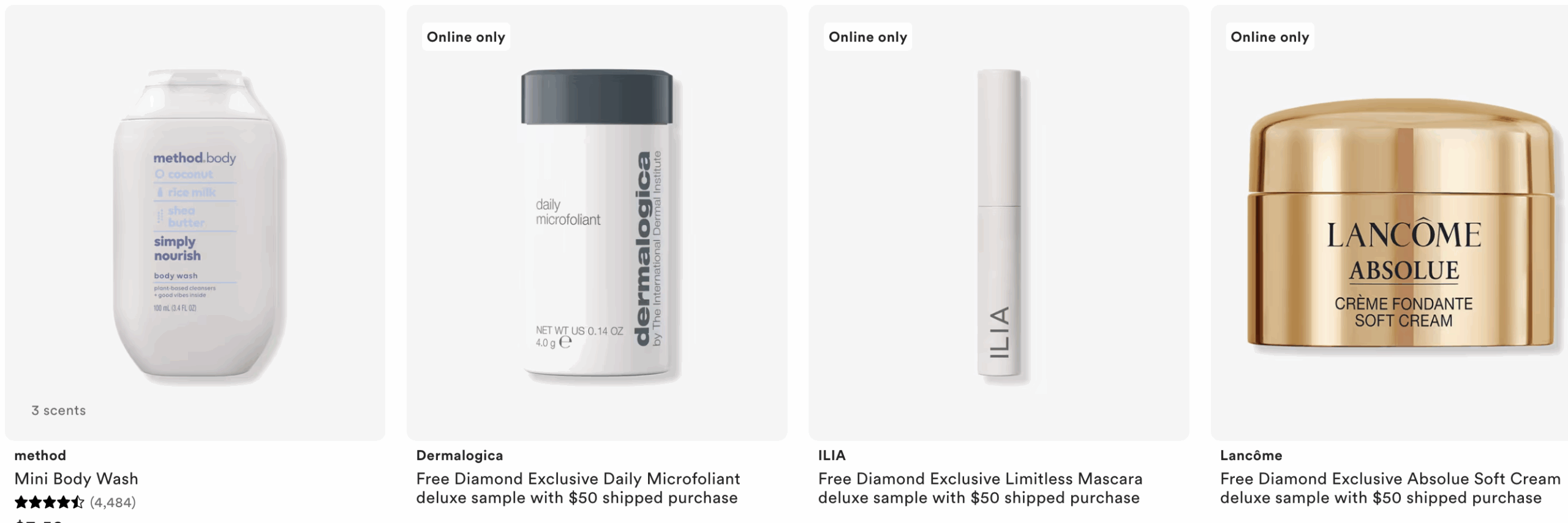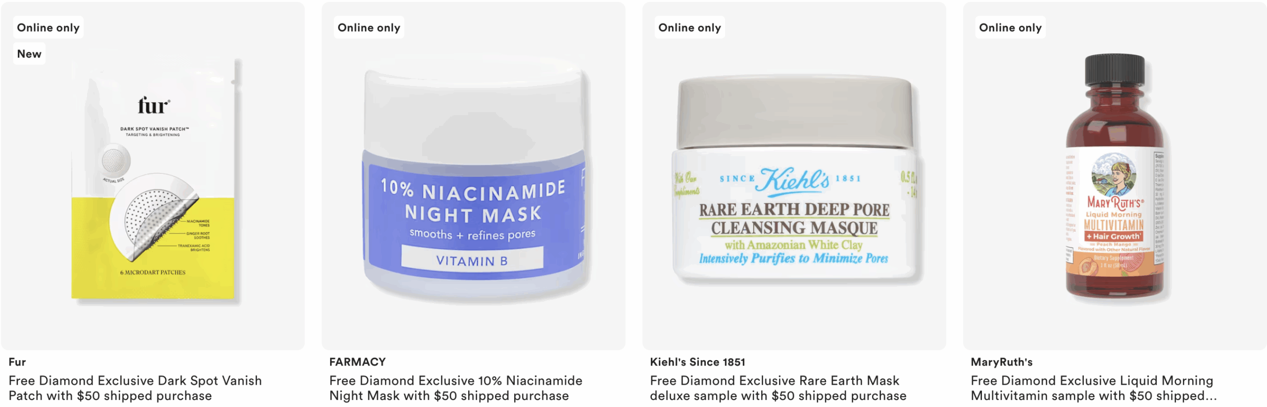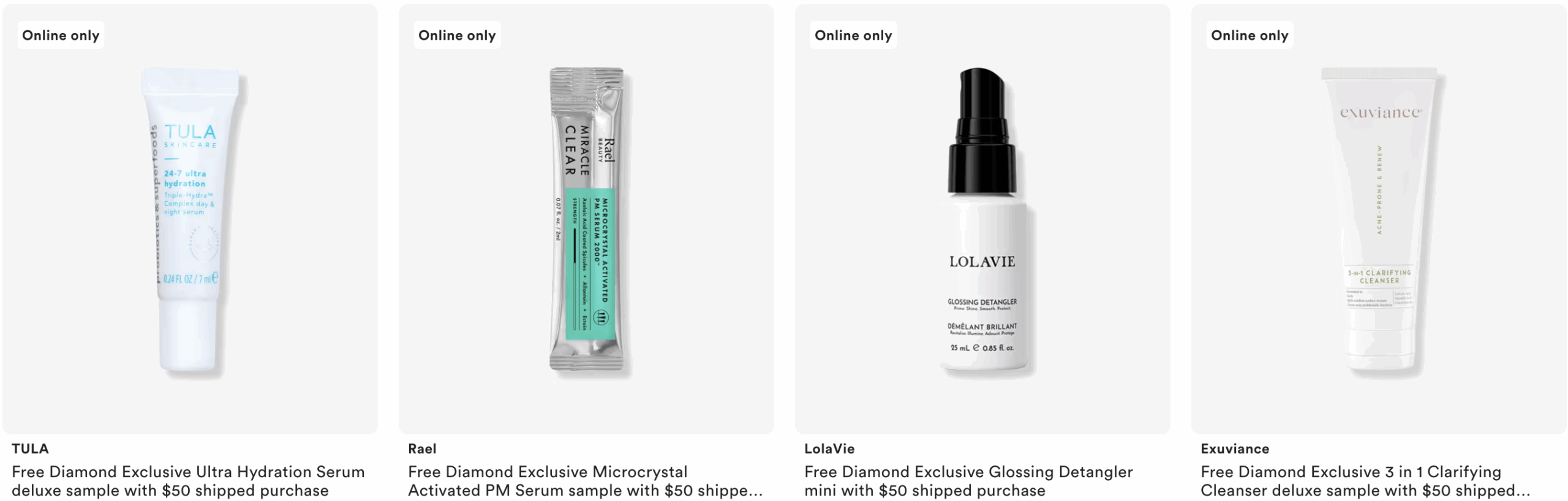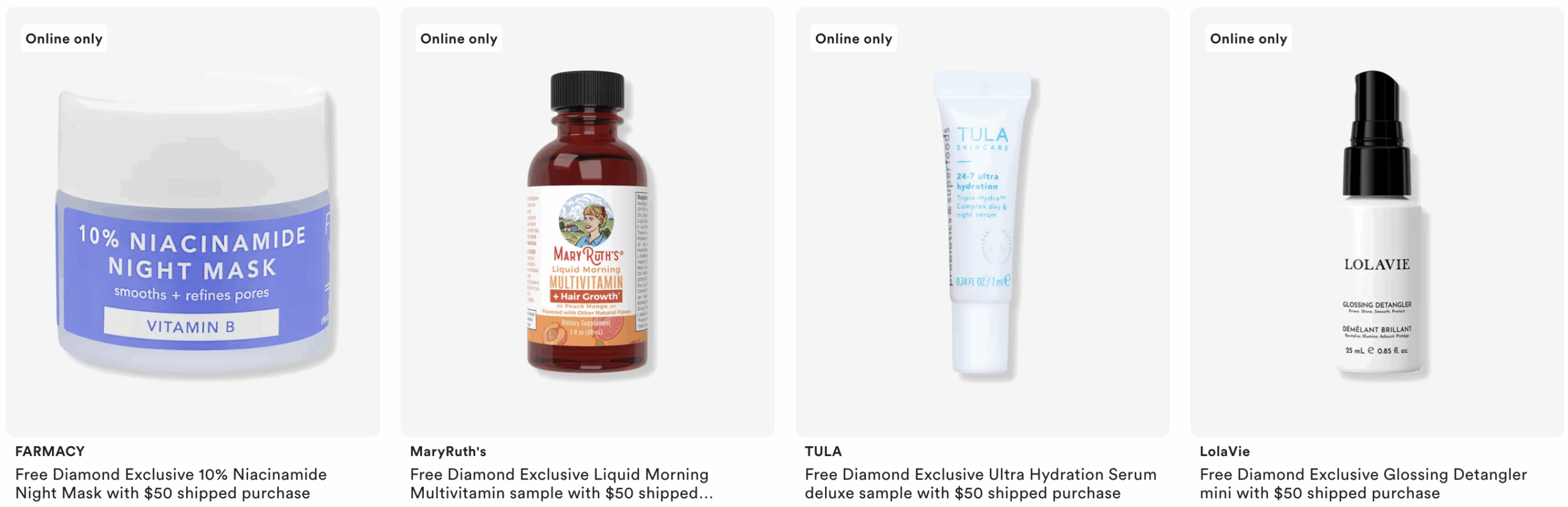 And, Diamond member exclusive choose 1 free gift with $50 purchase