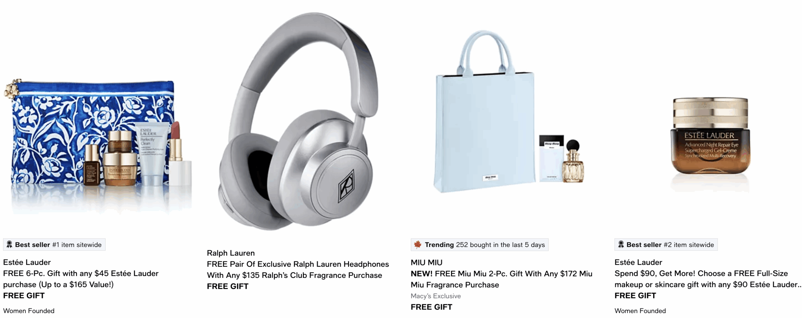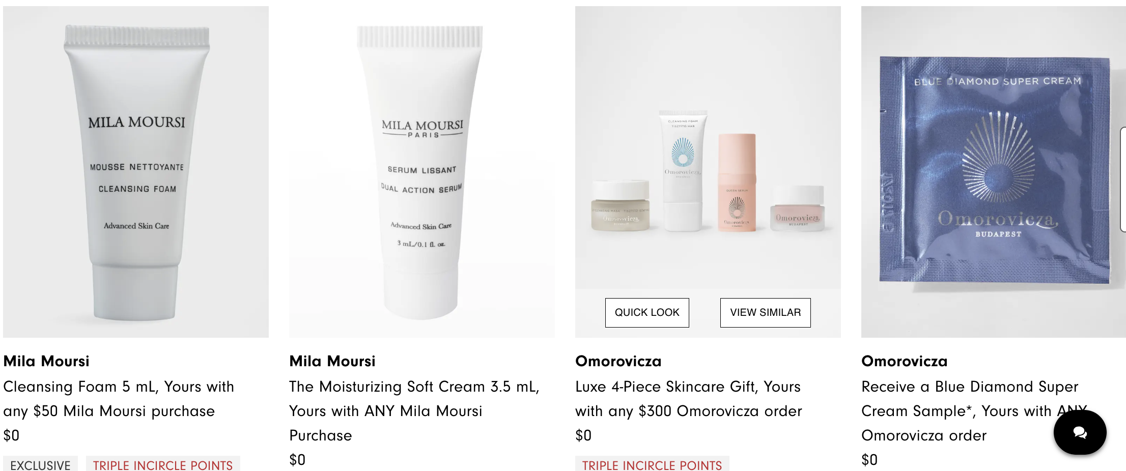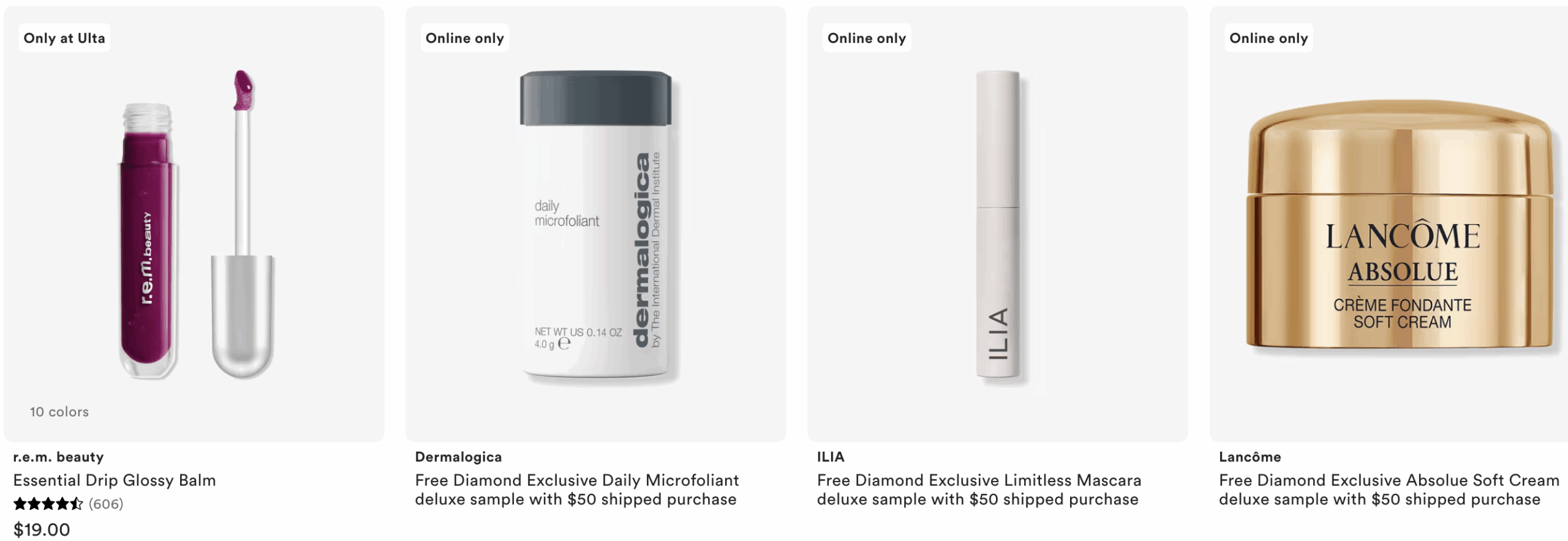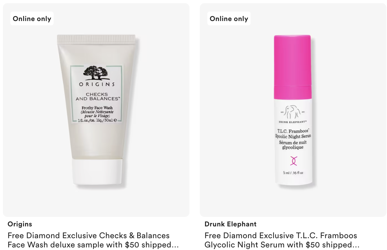 And, Diamond member exclusive choose 1 free gift with $50 purchase