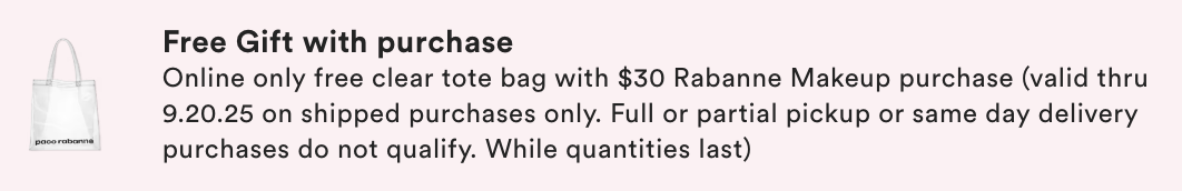Free shipping with $25 purchase. Click here to the gift with purchase page.
