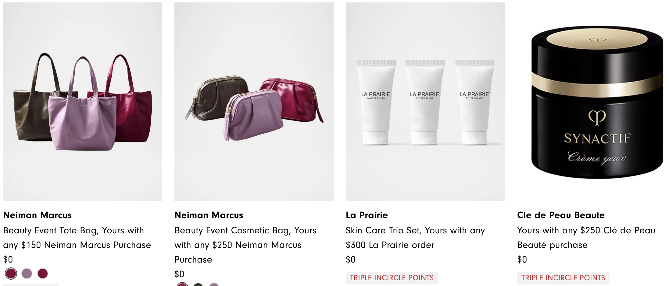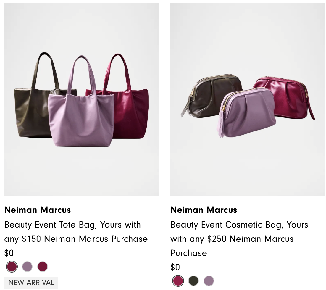 Choose 1 of 3 free samples filled tote with $150 beauty purchase Neiman Marcus. And, a free beauty bag with $250 beauty purchase.