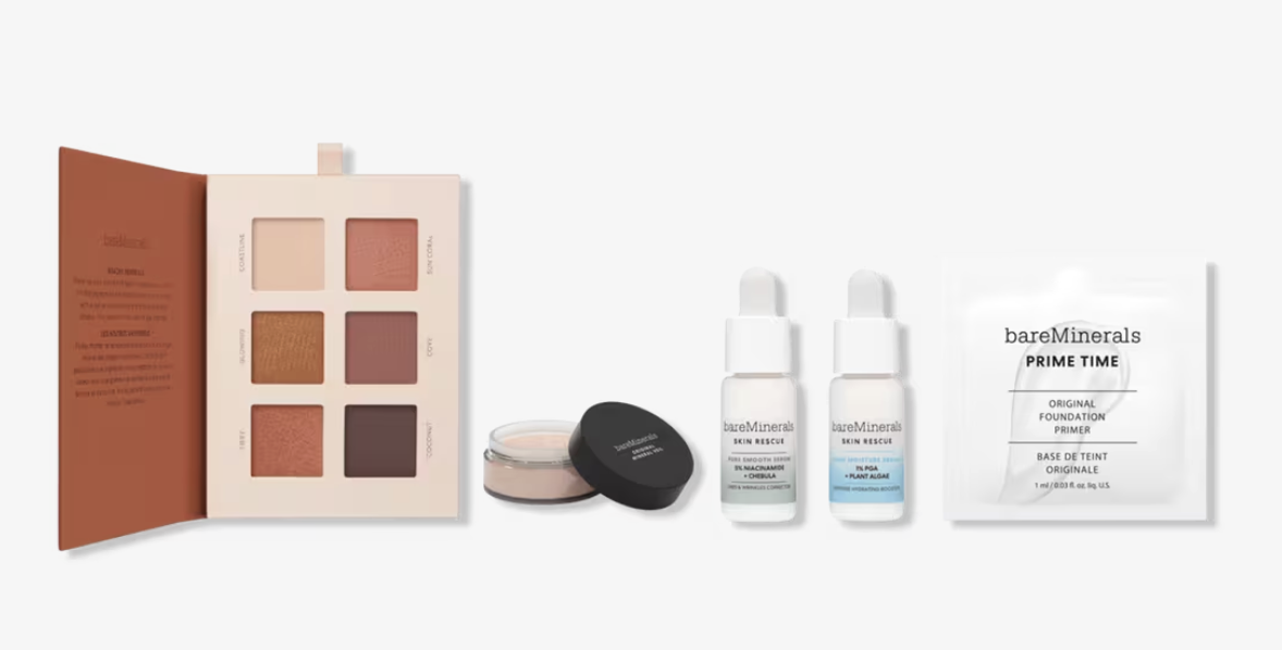 Free 5 Piece bareMinerals Gift with $60 shipped purchase only at Ulta.com. MUST ADD TO BAG. One per customer. While quantities last. A $60 value.