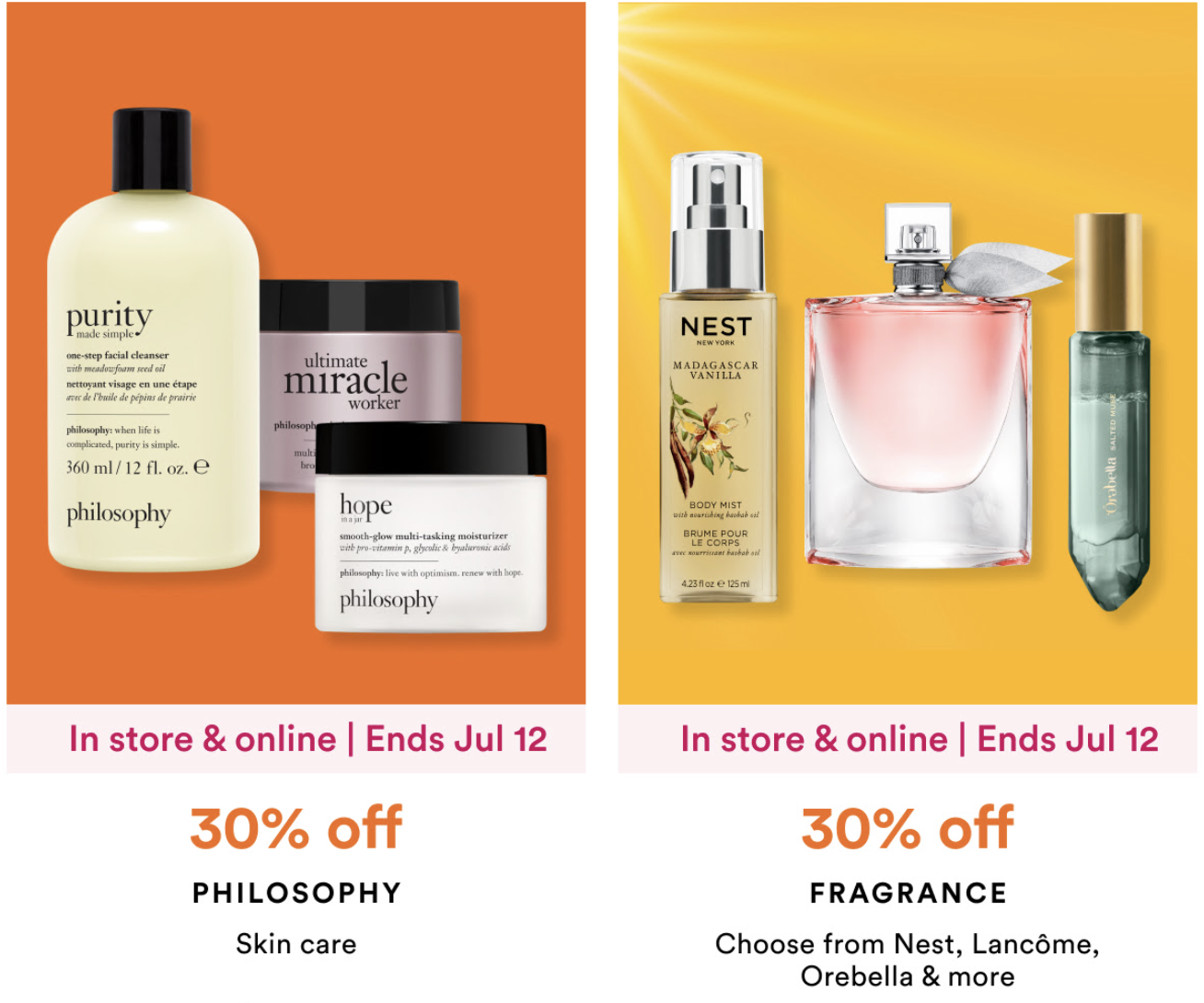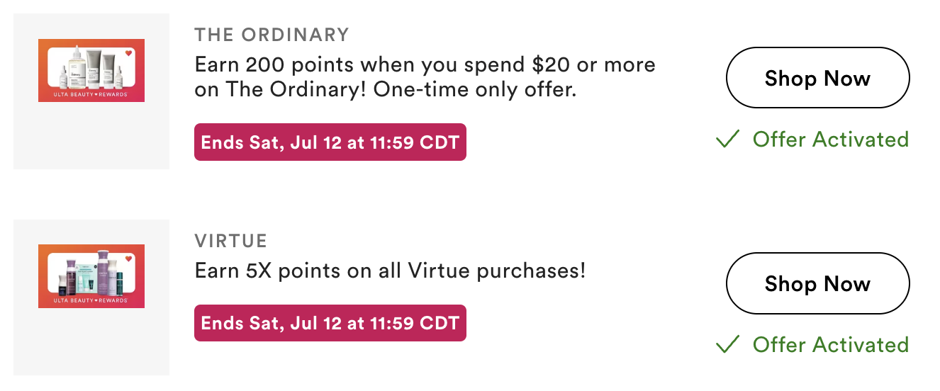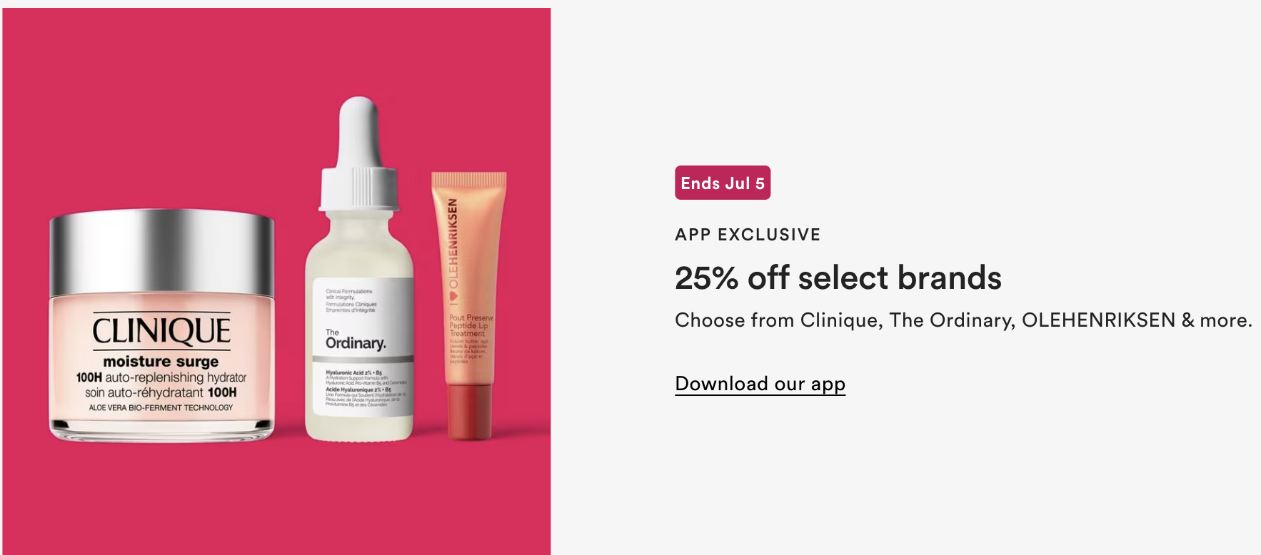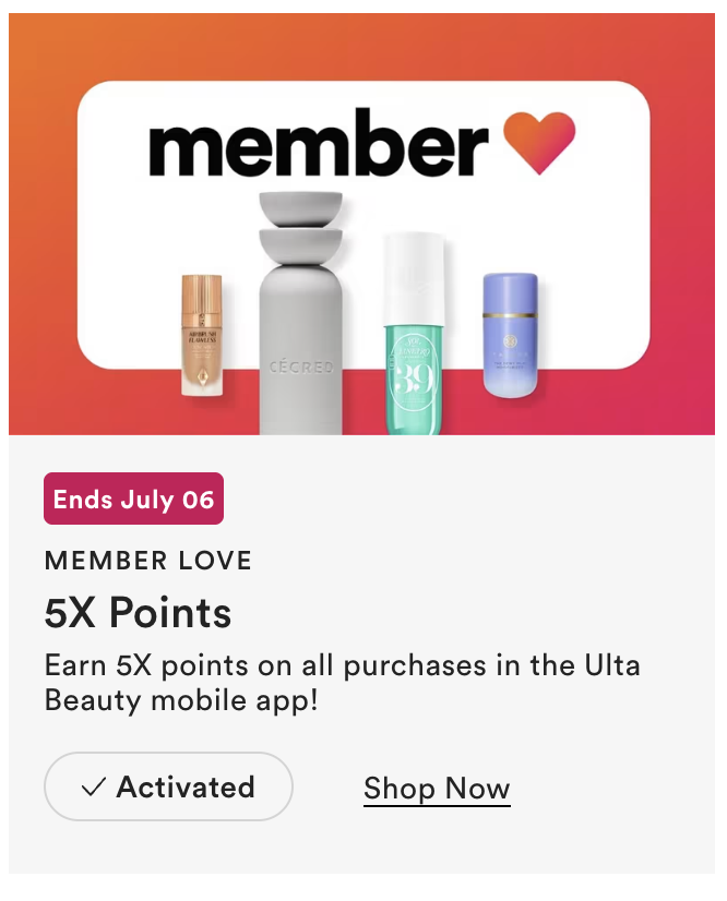 - Earn 5X points on select skin care brands: TULA, OSEA, Clarins, Estée Lauder, Elemis, Origins, and Fresh purchases! Ends Sat, Jul 05 at 11:59 CDT
