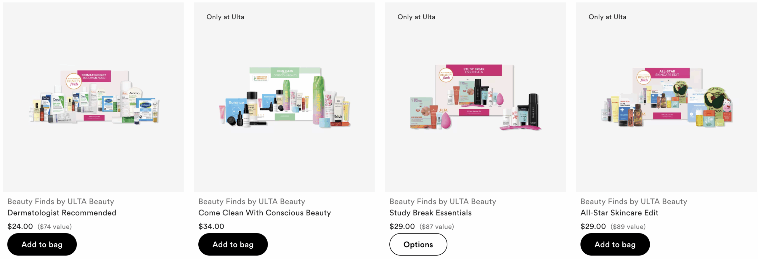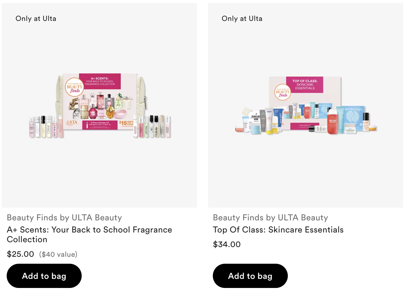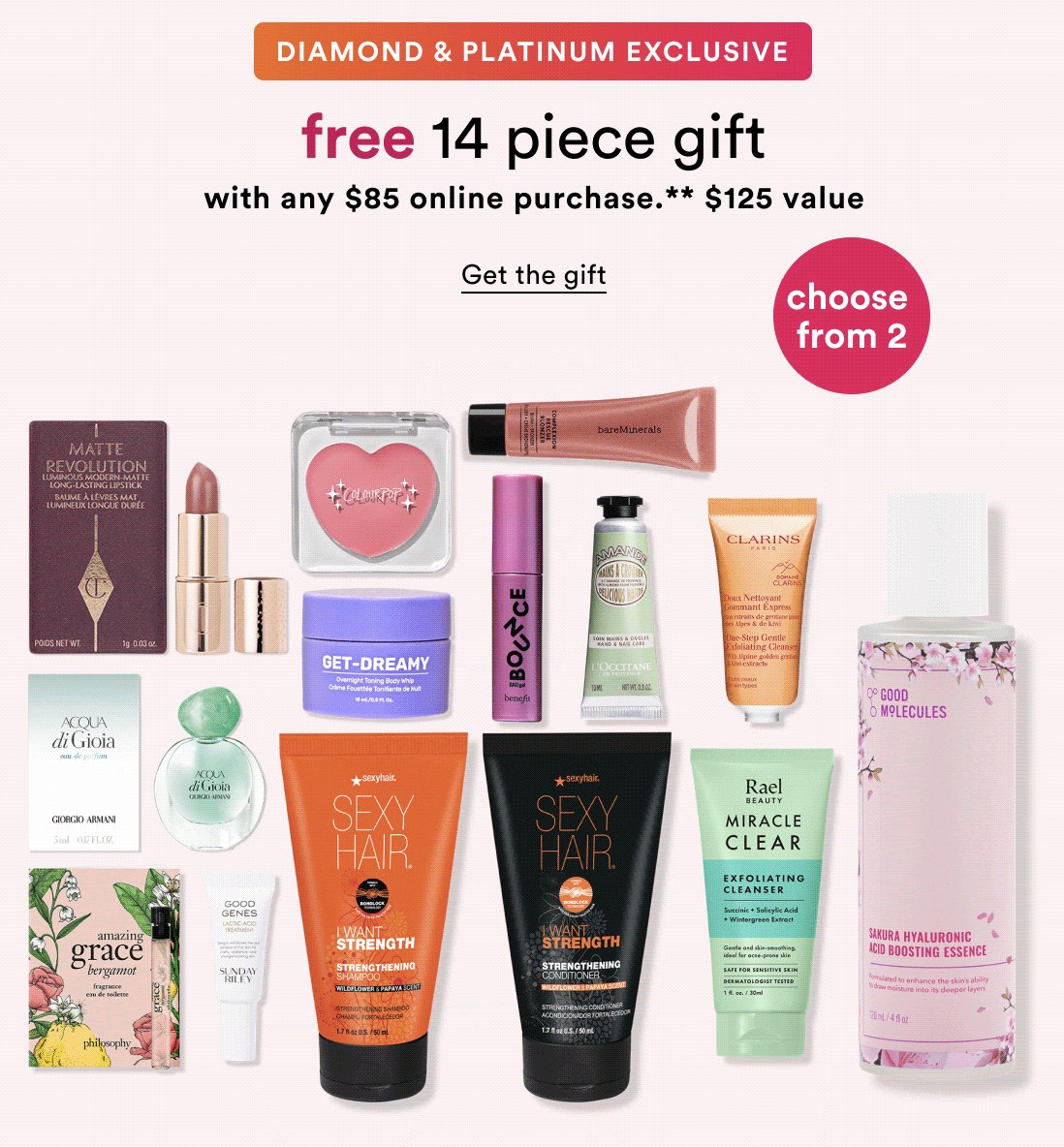 And, Choose 1 of 4 Free 13 Piece Beauty Bag ($98 value) with $90 shipped purchase only at Ulta.com. MUST ADD TO BAG. One per customer. While quantities last.