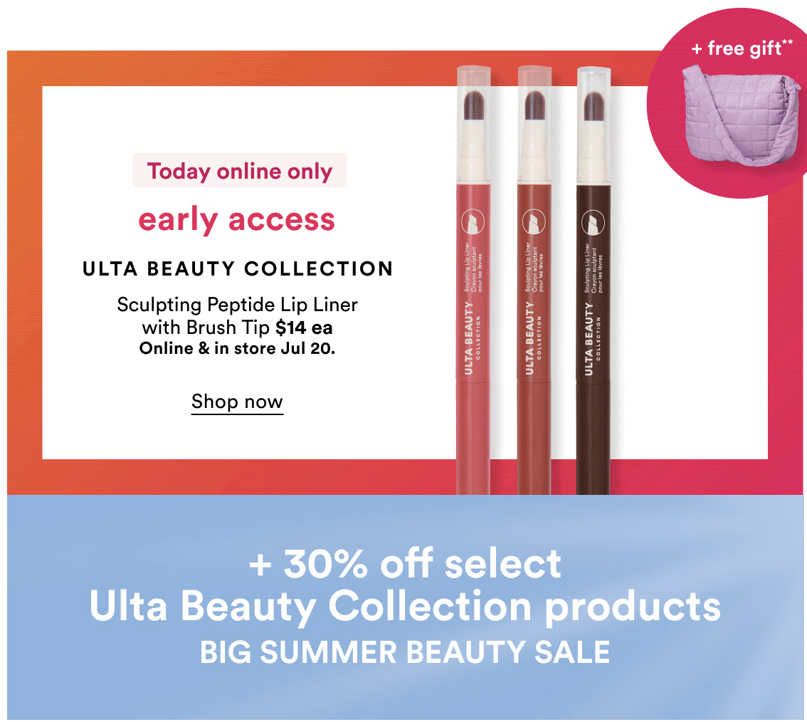 Free Quilted Bag with any $17.50 Ulta Beauty Collection purchase