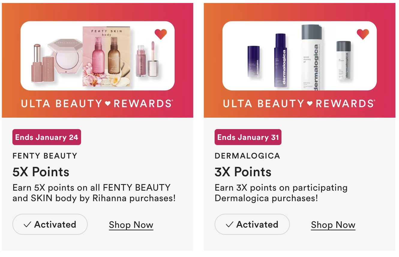 - Earn 5X points on all FENTY BEAUTY and SKIN body by Rihanna purchases! Ends Sat, Jan 24 at 11:59 CST
