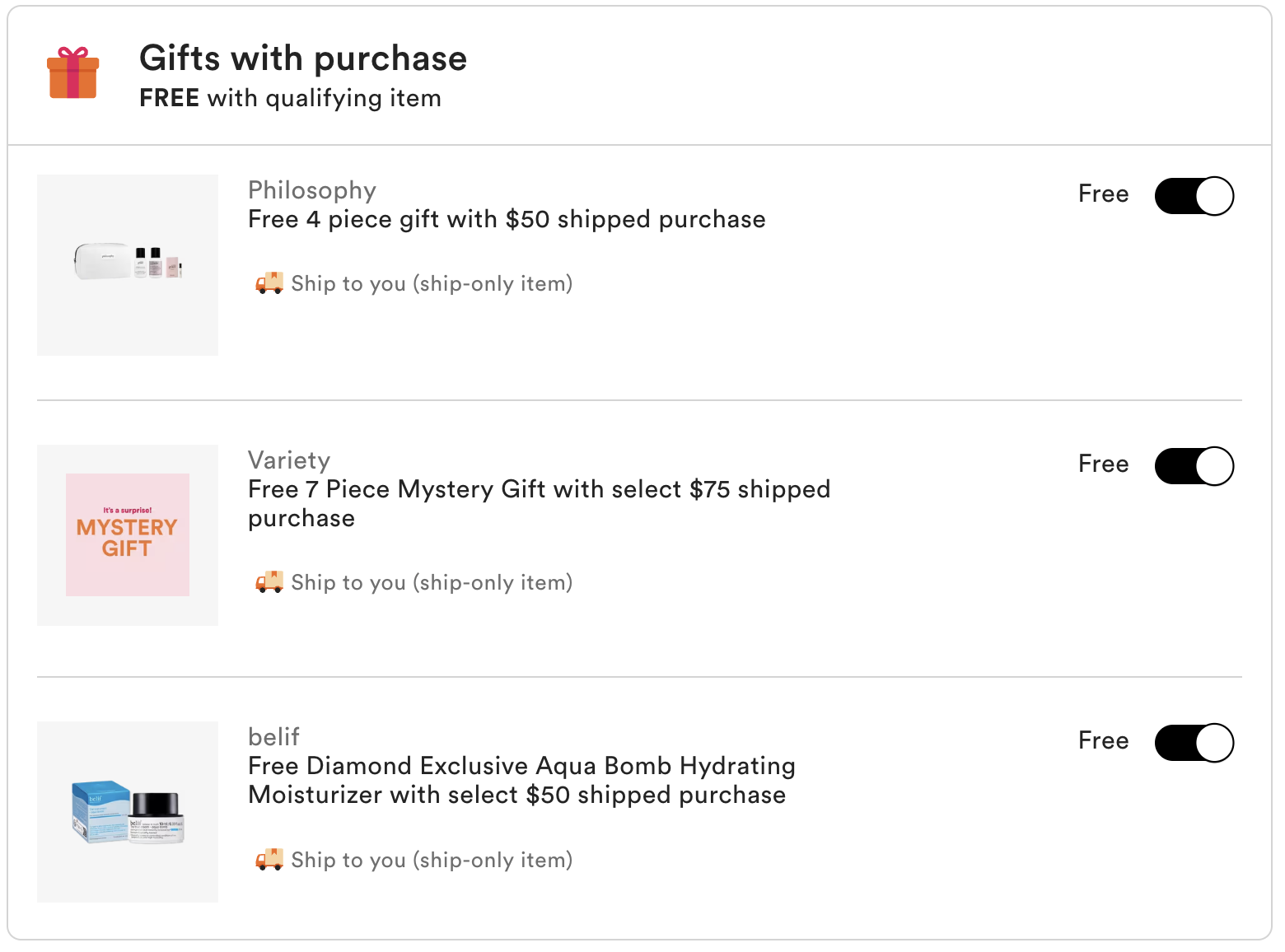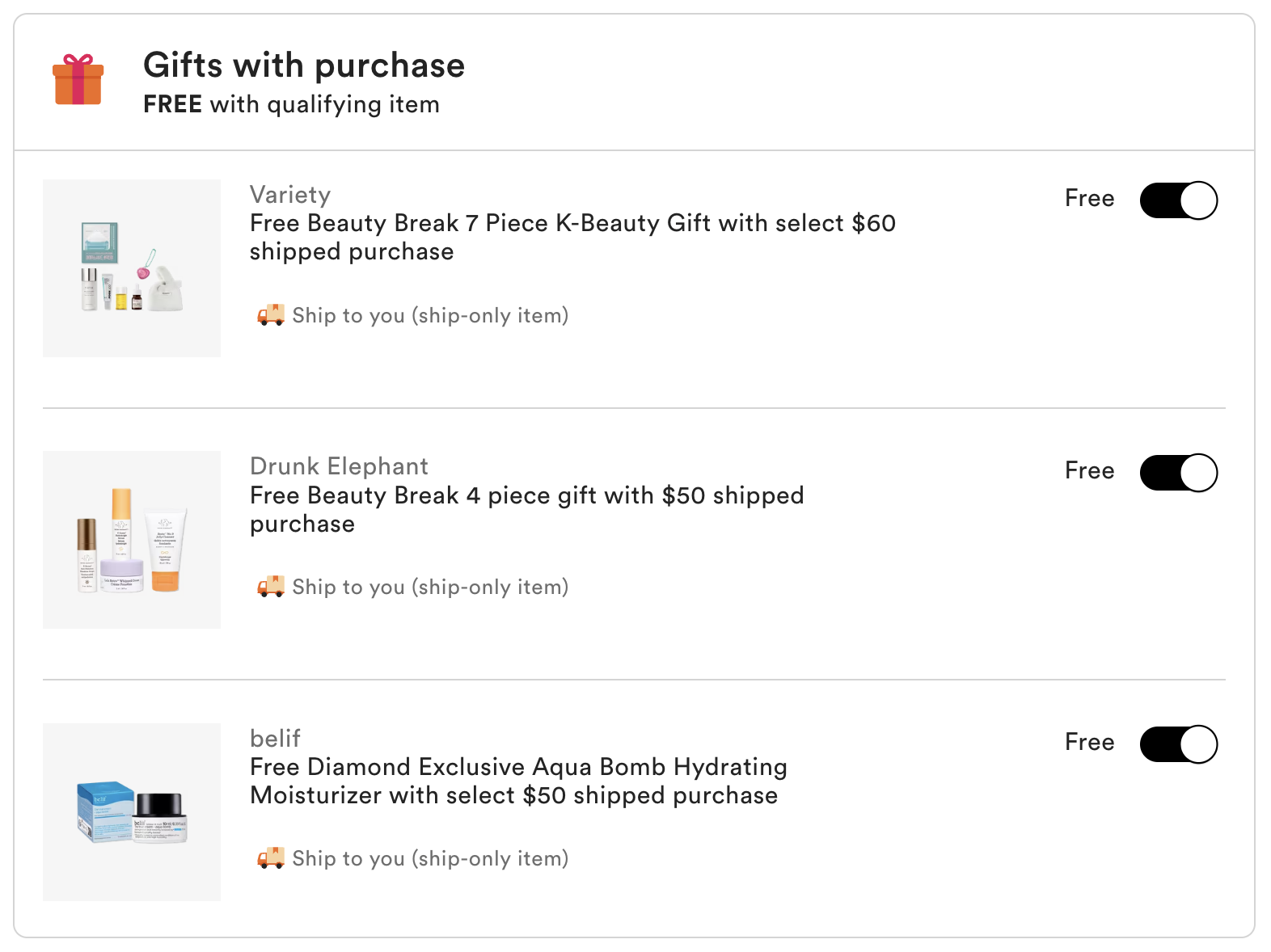 Diamond member exclusive – Choose 1 free gift with $50 purchase