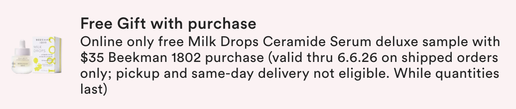 And, Choose 1 of 2 Free Gift with select $90 shipped purchase only at Ulta.com. MUST ADD TO BAG. One per customer. While quantities last. Must have one non UB Marketplace™ Product in bag to qualify.