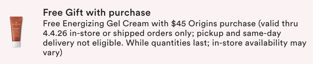 Free 5 Piece Origins Gift with select $50 shipped purchase at Ulta.com.