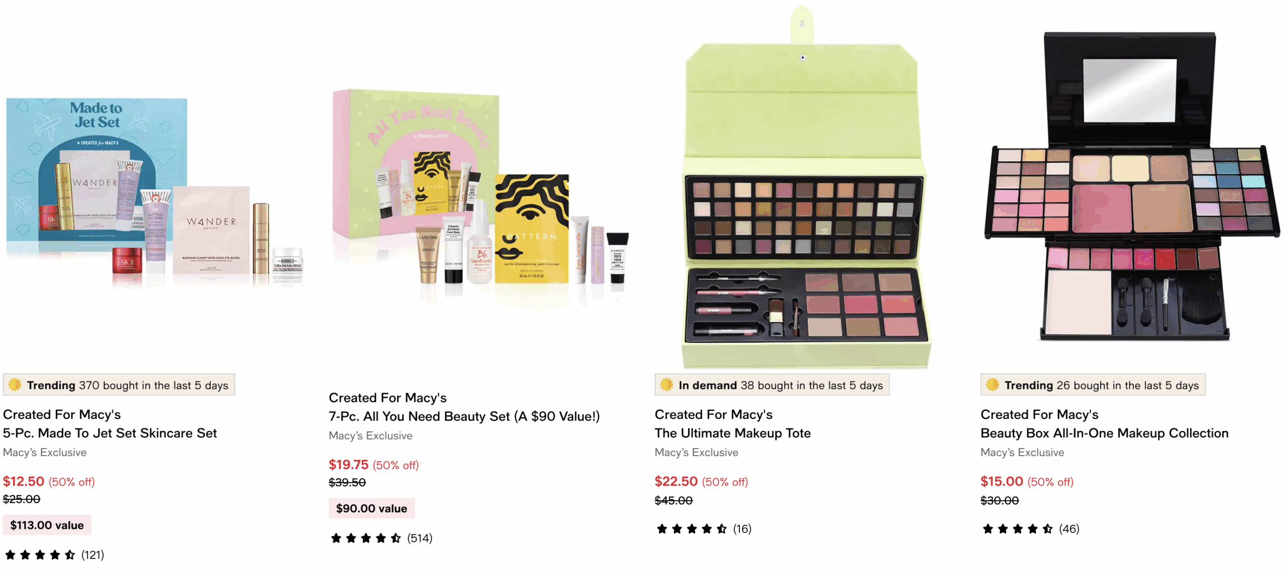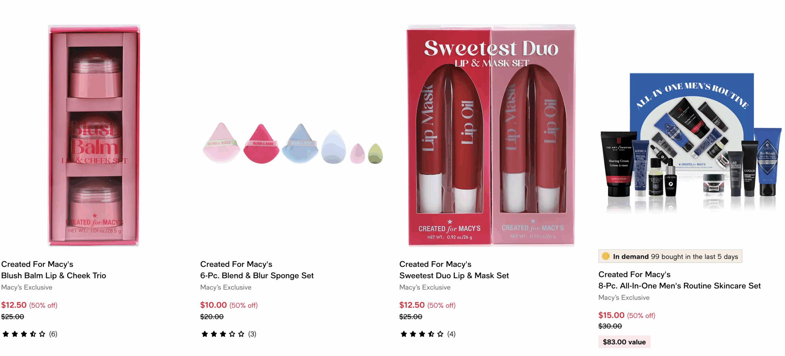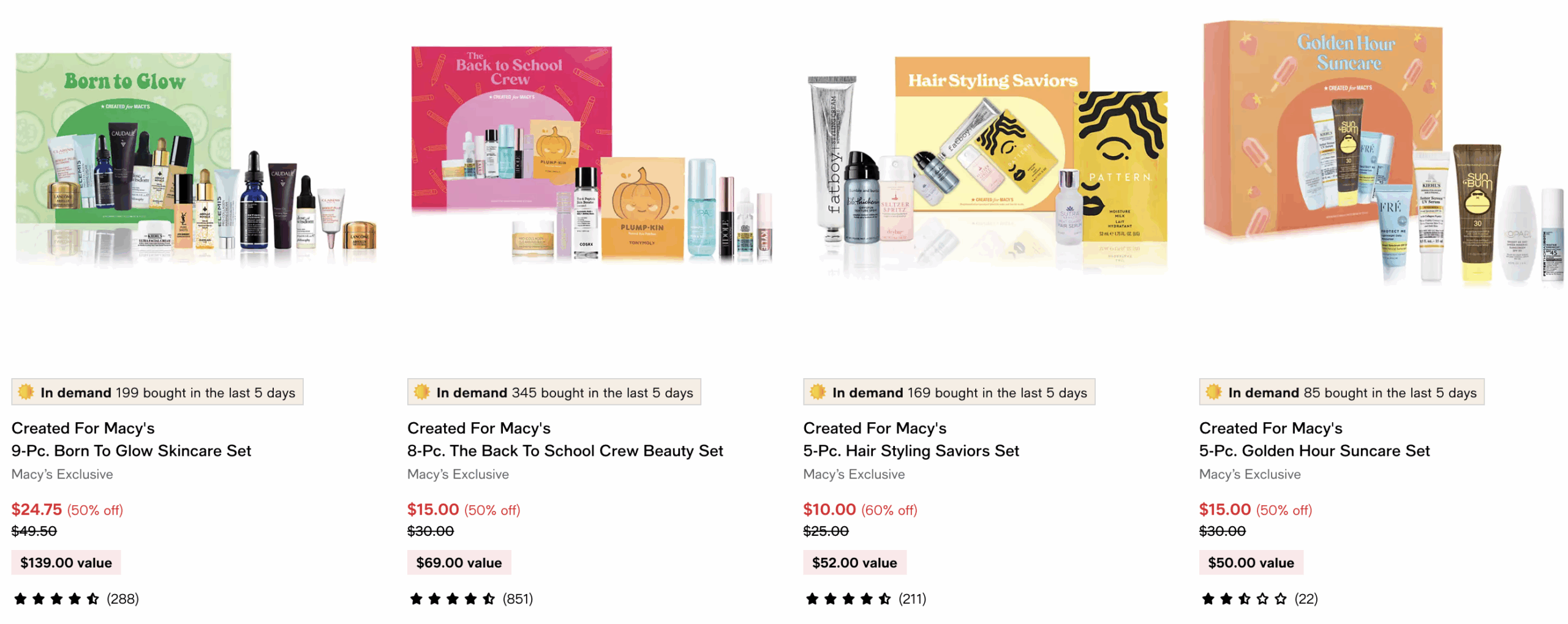 Check out the Macy’s beauty sale page, select kits are 50% off.