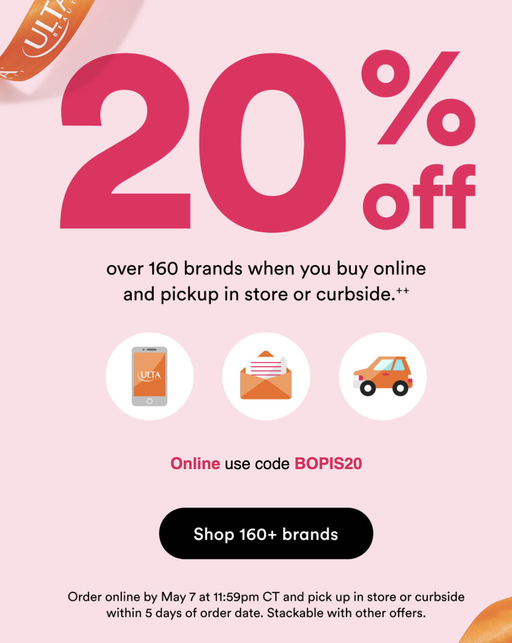 NEW Get 20% off over 160 brands when you buy online and pick up in store at Ulta. Use code BOPIS20, ends 5/7.