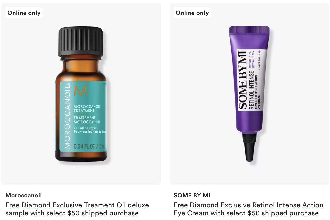 Diamond member exclusive – Choose 1 free gift with $50 purchase