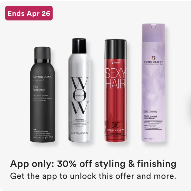 App Only, 30% off styling & finishing, ends 4/26