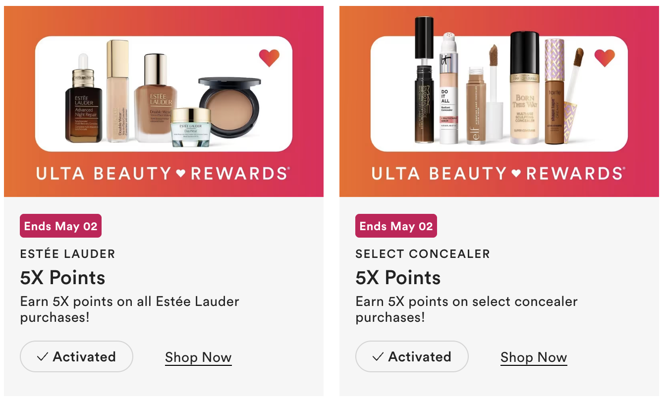 - Earn 5X points on all Estée Lauder purchases! Ends Sat, May 02 at 11:59 CDT