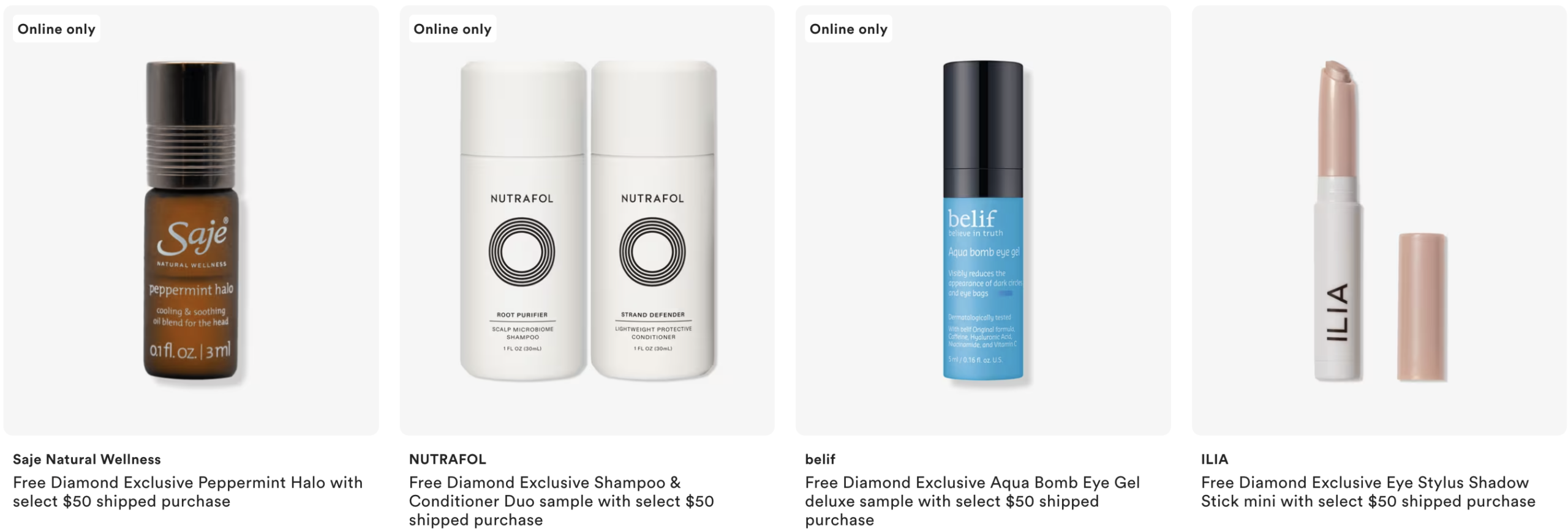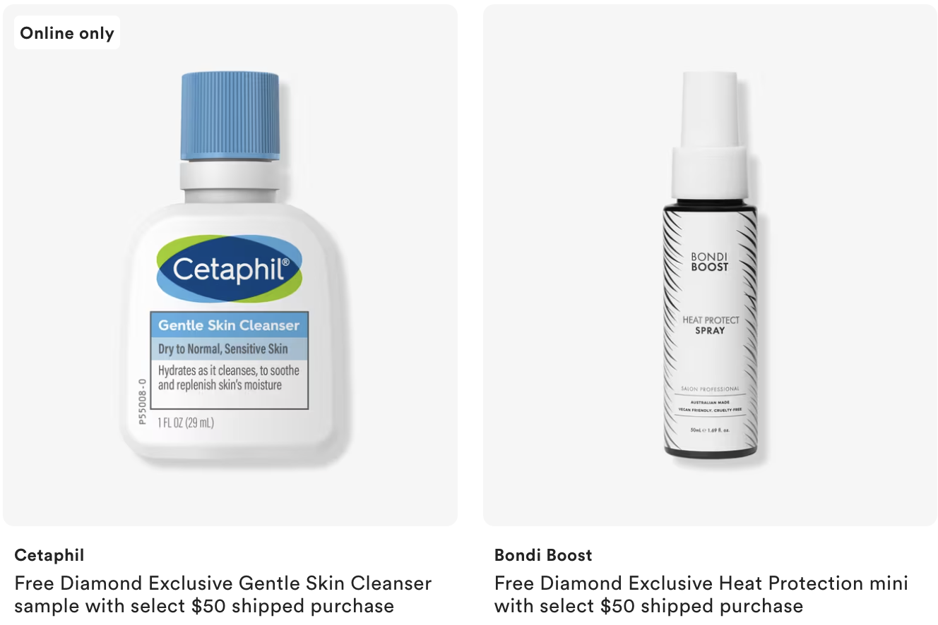 Diamond member exclusive – Choose 1 free gift with $50 purchase