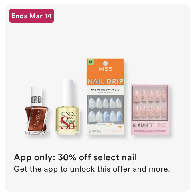 App Exclusive – 30% off select nails, ends 3/14