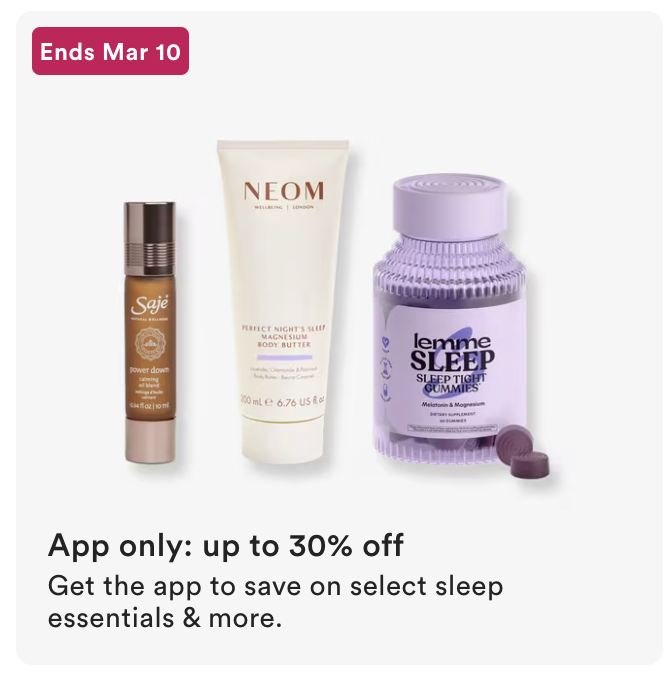 App Exclusive – 30% off select sleep essentials and more