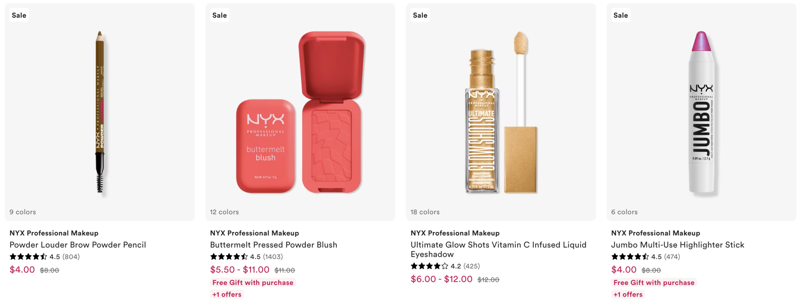 NYX select items 50% off